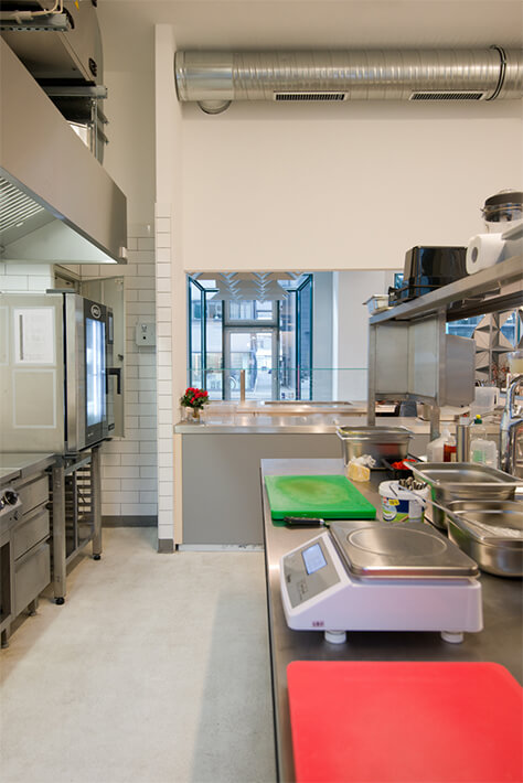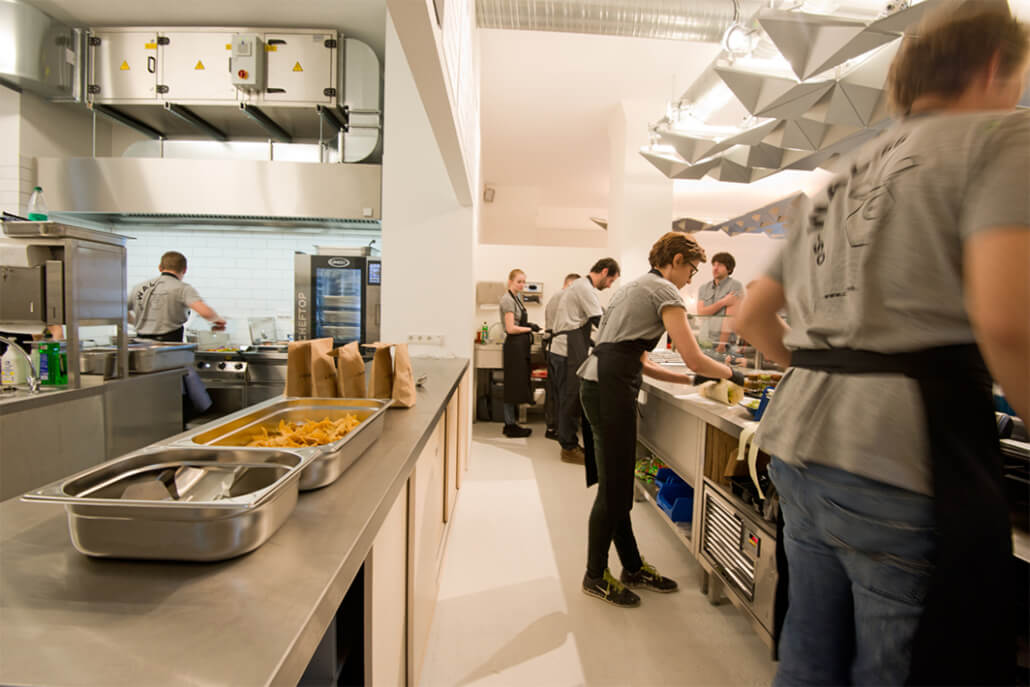 Planung des gastronomischen Konzepts und der küchentechnischen Einrichtung mit Ausgabestation nach aktuellen Designlinien.
