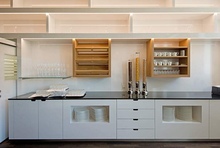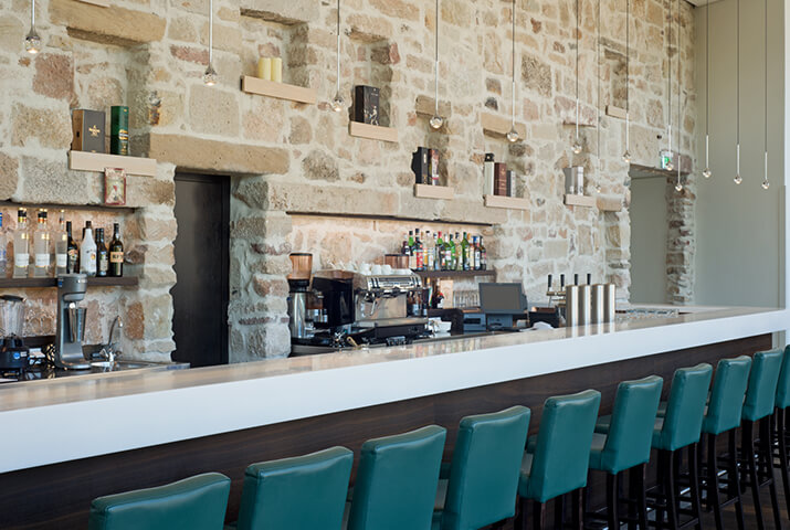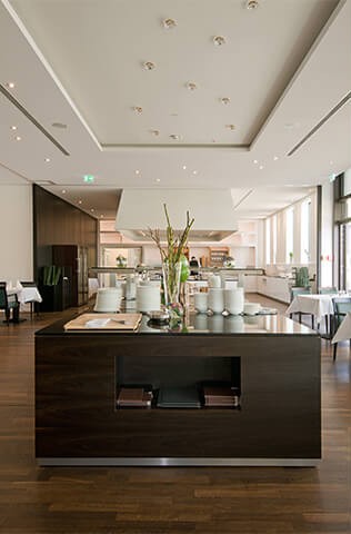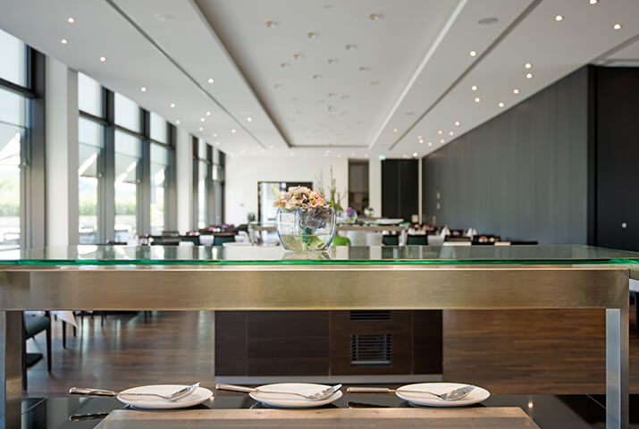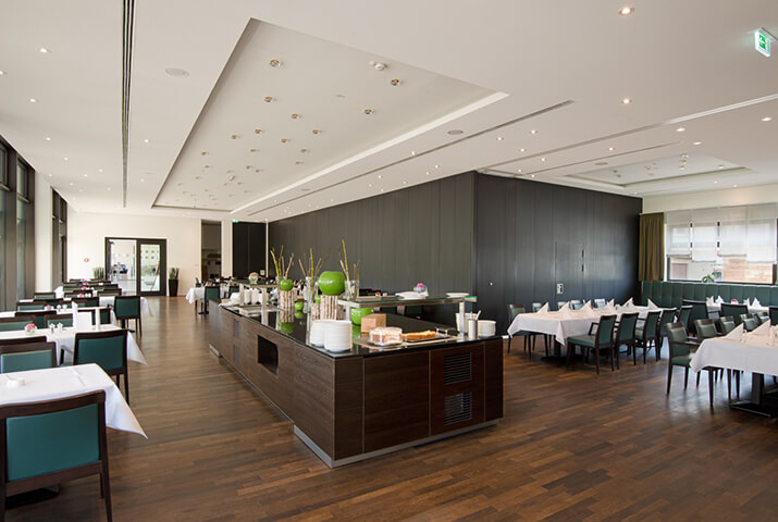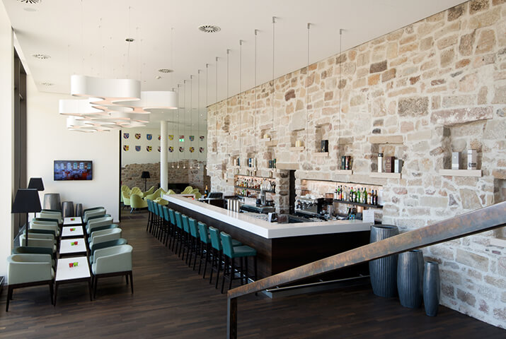 Nach einer langen Klostergeschichte, beginnend im Jahr 1235, wird die Anlage heute als Domizil für Tagungs- und Hotelgäste genutzt. Das historische Anwesen wurde dafür mit modernen Neubauten erweitert. KDREI bekam den Auftrag, die Hauptküche (à la carte Gäste), den Gastronomiebereich für das Frühstück, sowie die Hotelbar zu planen. Sehr reizvolle Innenarchitektur, die historische und modern Elemente zu einem harmonischen Ganzen zusammenfügt. Die ursprüngliche Klostermauer nimmt im Inneren des modernen Barbereichs ihren ununterbrochenen Verlauf, so dass ein schöner Kontrast entsteht.