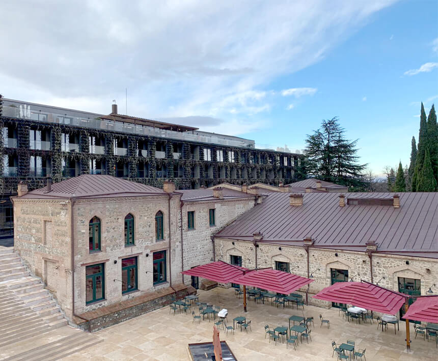 Die altehrwürdigen Mauern bieten Gästen Platz in 141 Zimmern und Suiten mit exklusiver Einrichtung, sowie 3 Tagungsräumen. Auf dem Dach befindet sich der Spa-Bereich „Infinity-Pool“ mit einzigartigem Blick auf den Kaukasus. Die Veranstaltungseinrichtungen beinhalten weiterhin ein beeindruckendes Amphitheater unter freiem Himmel für bis zu 1200 Gäste und den Ballsaal. Beide Lokations eignen sich perfekt für Galas, Hochzeiten, Konzerte und Konferenzen.