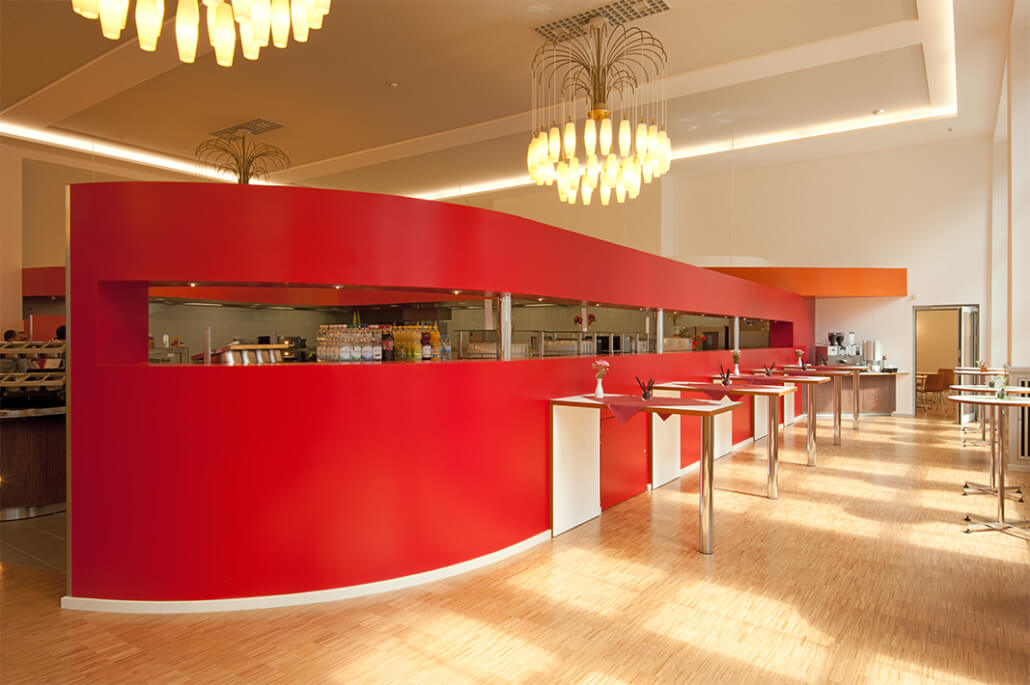 Umbau eines vorhandenen Saales zum neuen Mitarbeiterrestaurant nach Hado-Konzept.